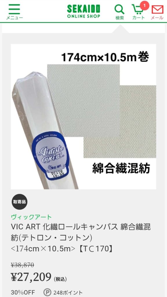 ところが、2年前に 3万5,000円ほどで購入していた同じロールキャンバスを調べてみると、現在の価格は12万円…とても手が出ない値段へと値上がりしていました。