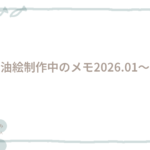 - 前回の絵は絵の具の積層を意識しすぎて単色の色面のみだった