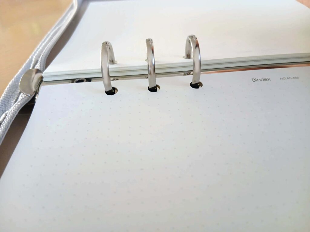 リングノート系あるあるなのですが、特に使い初めでファイルに入っているが少ないうちは、左ページを書くときに手にリングが当たるのが気になりました。